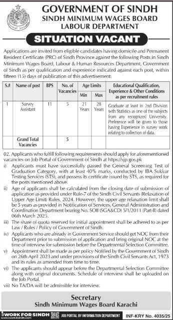 Vacancies Details of Sindh Minimum Wages Board Jobs 2025